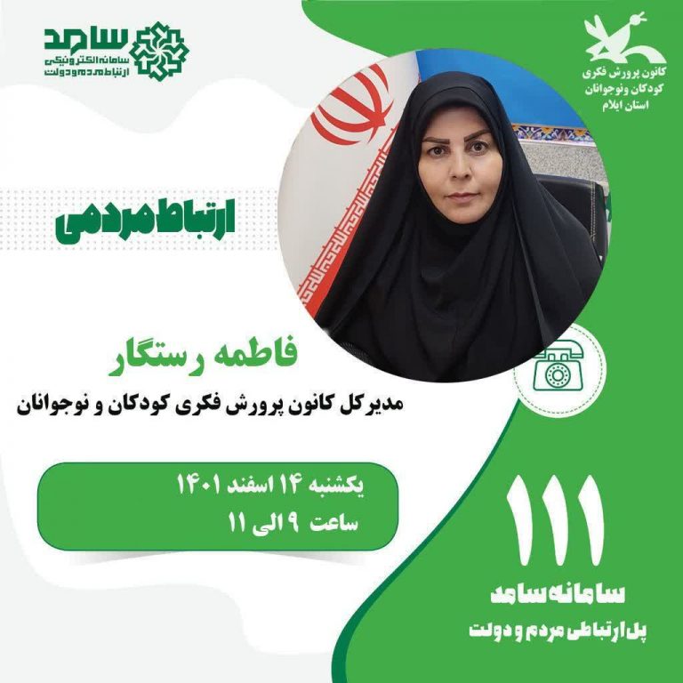 در این برنامه مردم شریف استان ایلام می توانند از ساعت ۹ الی ۱۱ صبح و از طریق شماره تلفن ۱۱۱ سامانه سامد با مدیرکل کانون استان ارتباط برقرار کنند .